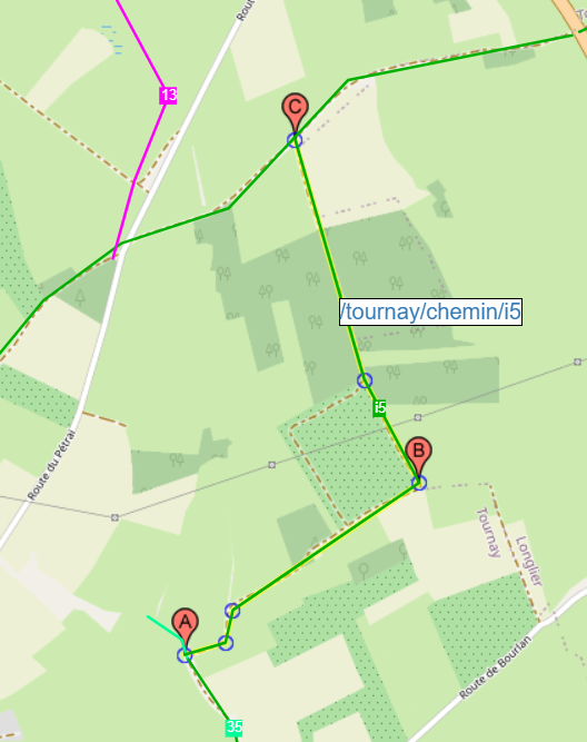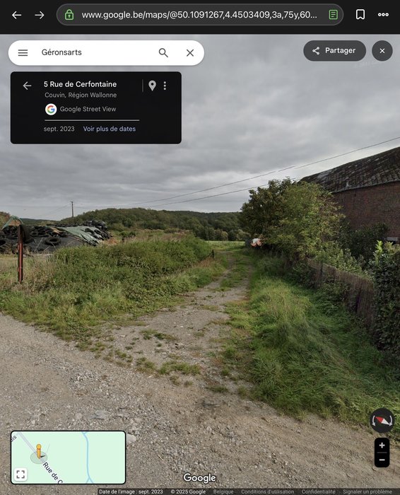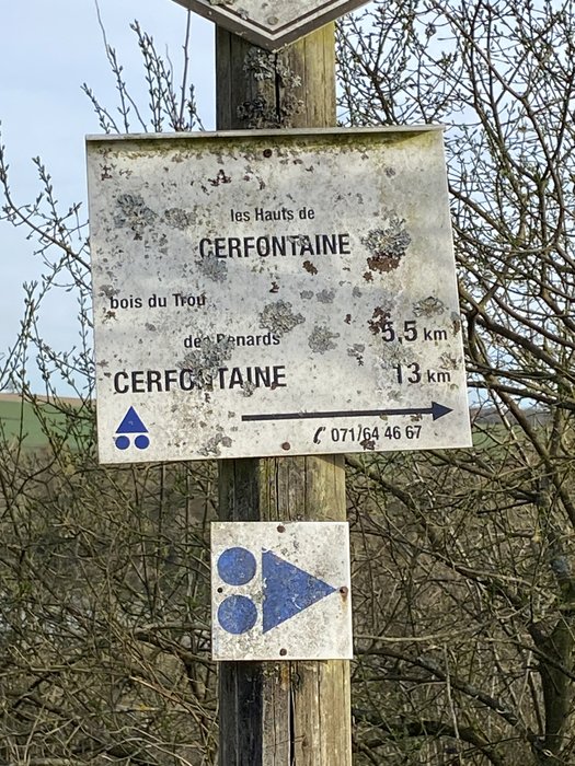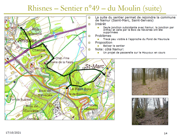 Le sentier passe le long de mon domicile (rue Victor Cuvelier), il s'arrête à 50m de chez moi, au tourniquet d'une prairie et avant, de l'autre côté de la prairie, il y avait un petit pont et il est cassé, ce qui fait que plus personne n'y passe mais c'est dommage. Avant, il rejoignait la rue de Profondrieux.