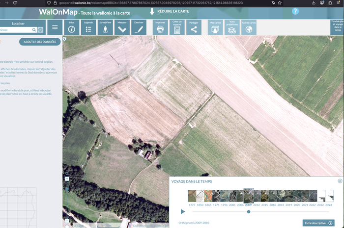 Le chemin longeait un champ. Ce chemin était visible sur les vues aériennes. Lors de notre promenade, le chemin n'existait plus : le fermier a labouré tout le champs, chemin compris.
