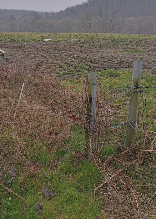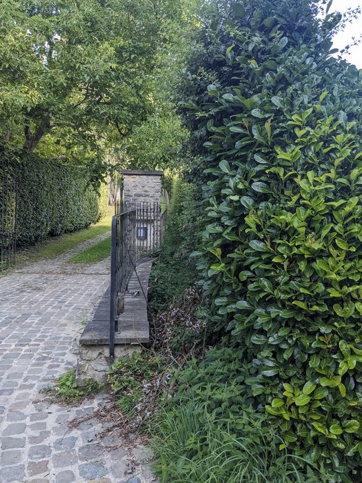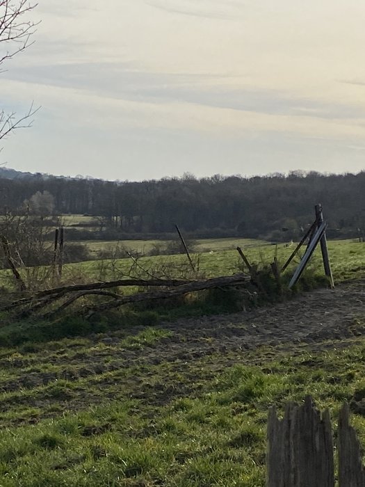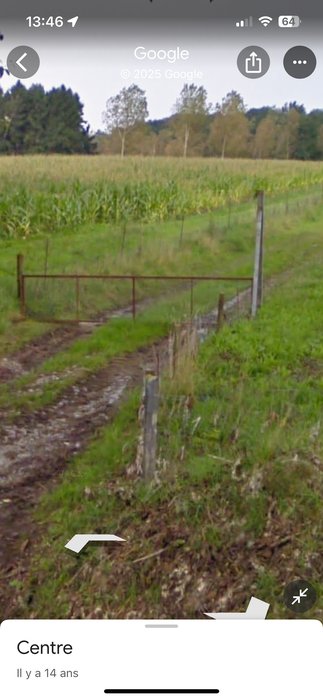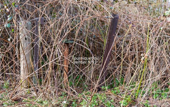 De la rue Stiénette vers la rue Lavable, le sentier 121 passait dans le champ, entre deux barrières. Je l'empruntais avec mes enfants. Le fermier a maintenant fait un seul champ et fait tomber le pont dans le ruisseau. Plus moyen de passer, ce qui sécurisait pourtant les déplacements avec des petits...