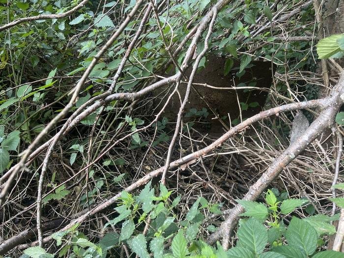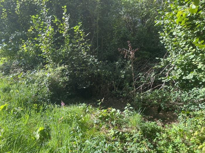 Passage rendu difficile par des obstacles naturels camouflants l'entrée.