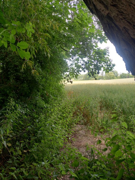Depuis au moins 4-5 ans, le chemin, à l'origine empierré, est labouré, chaque année (l'agriculteur possède les deux parcelles de part et d'autre) et semé. Seul le passage du tracteur, après le semi, forme une légère trace permettant le passage à pied (mais pas en véhicule et presque pas en vélo, hormis en VTT, et encore, impossible dans les jours qui suivent la labour).