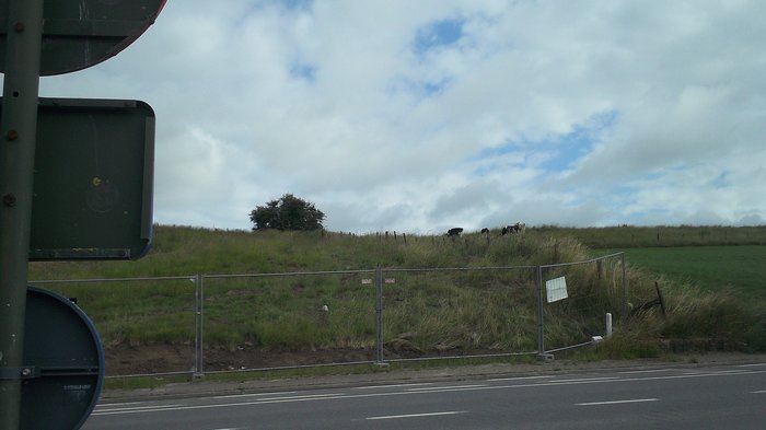 Une pâture empêche le passage sur le chemin n°18 de Denée, avec une barrière du côté rue Delcour.