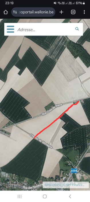 Il s'agit du sentier communal n°15, en justice via l'administration communale. Ce sentier est labouré depuis des année, et encore actuellement.