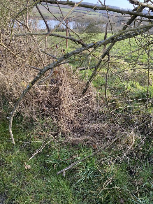 Un arbre couché depuis à peu près 1 an et demi bloque le passage sur le sentier, nous le contournons. Malgré plusieurs signalements auprès de la commune de Beauvechain, celui-ci est toujours là... Le sentier 24 fait l'objet de tentatives de modification de la part du propriétaire depuis 2019. Après enquête publique, le conseil communal a refusé sa demande officielle, et le propriétaire a introduit un recours (en cours) contre la décision communale. Malgré l'existence et la pratique de ce sentier, et des courriers officiels où la commune s'engage à l'entretien sur son ensemble, le balisage est plus que sommaire et l'entretien n'est pas effectué sur la portion traversant le domaine privé et les champs cultivés... par peur du conflit? Après participation à "La semaine des sentiers" (organisée par l'association Tous à pied) en 2020, des plaques officielles au nom du Sentier 24 ont été offertes à la commune qui n'a pas jugé bon de les placer... Depuis seuls quelques panneaux de règlement communal d'ordre public ont été disposés. Le sentier n'est toujours pas balisé.