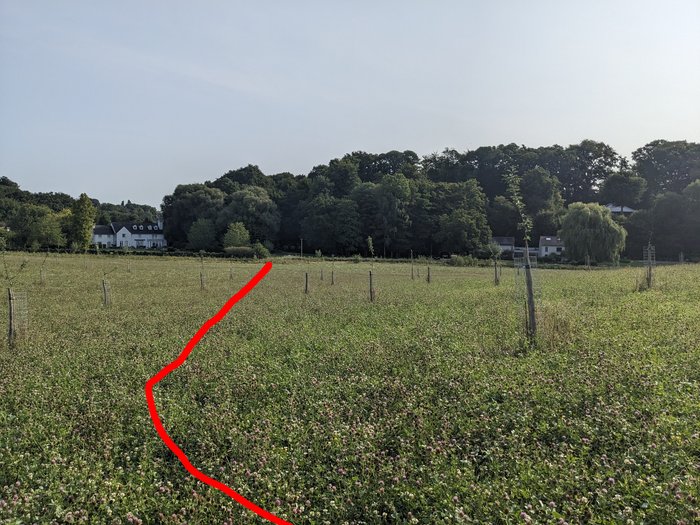 Sentier très régulièrement fréquenté et de manière incompréhensible soudainement barré, à l'image d'autres sentiers (publics) labourés sans détour possible. A nouveau, la chasse semble être le mobile de cette interdiction. Il n'est pas repris à l'atlas mais aucun signe d'interdiction n'est présent et le sentier est visiblement utilisé régulièrement (photo n°1). le passage est maintenant interdit avec chaîne basse (photo n°5). Le chemin semble avoir pourtant été emprunté pendant plus de 30 ans, une servitude de passage a donc pu s'y créer. cf https://chemins.be/warnant/chemin/i29